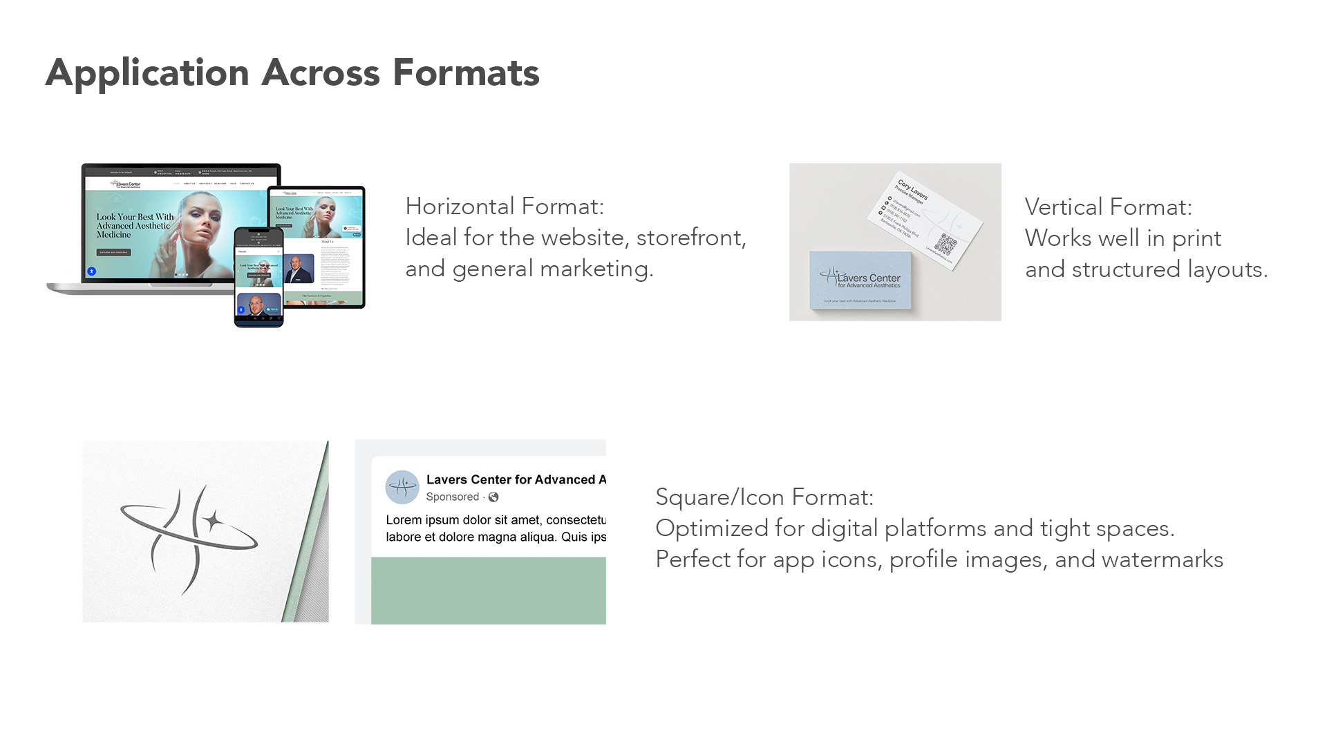 The evolved brand identity repositions Lavers Center for Advanced Aesthetics as a modern, medically trusted, technology-driven clinic—without losing the values that built its reputation.